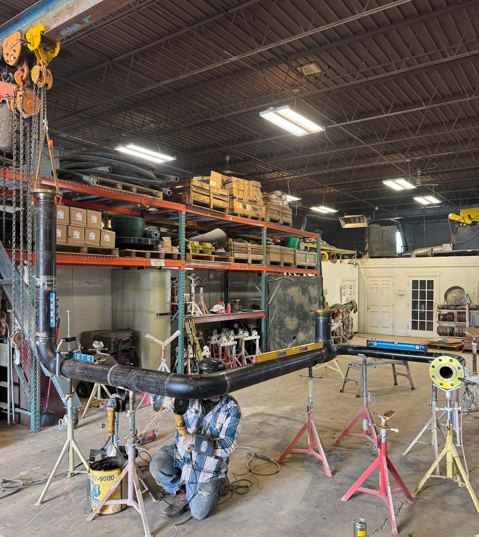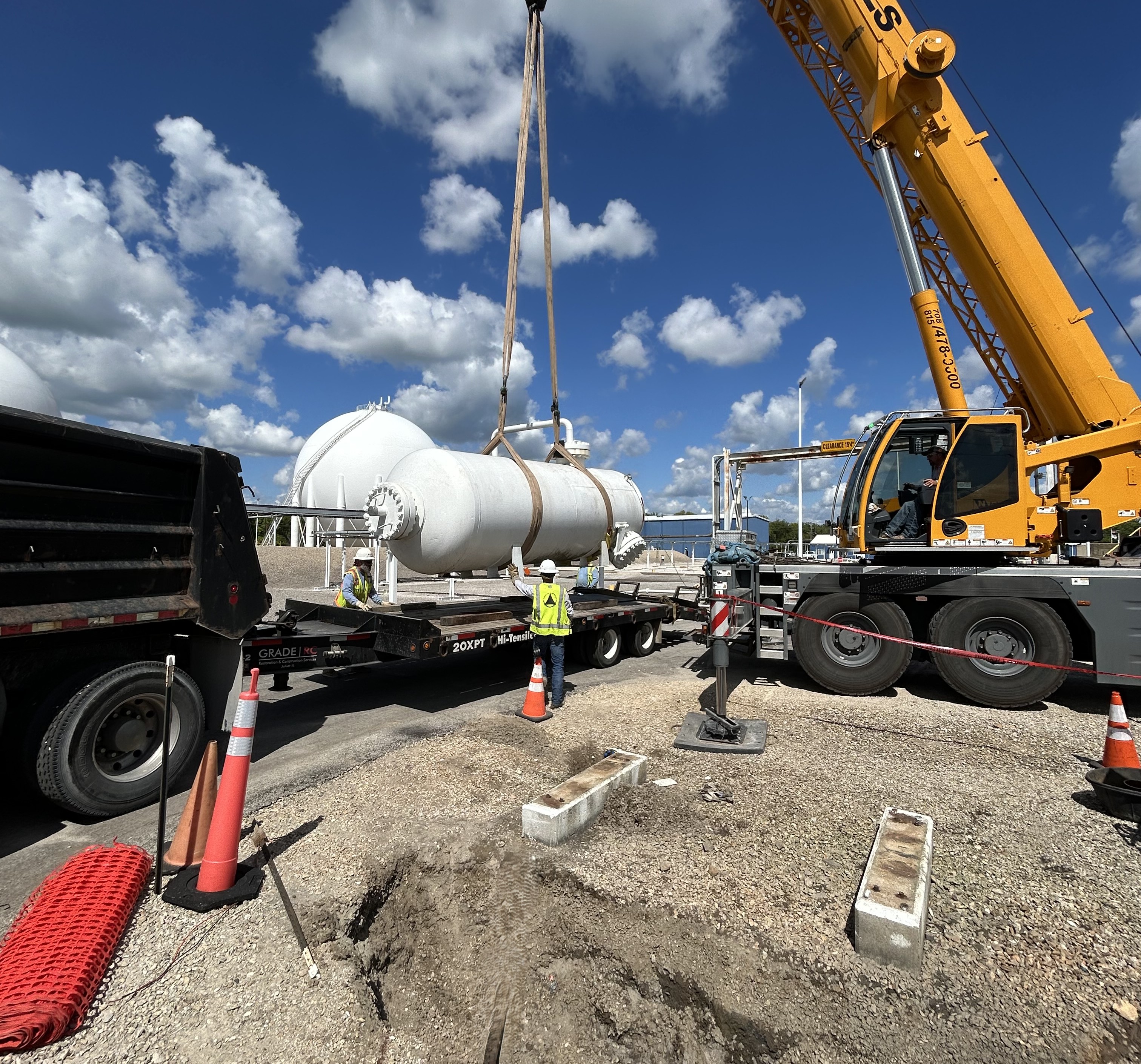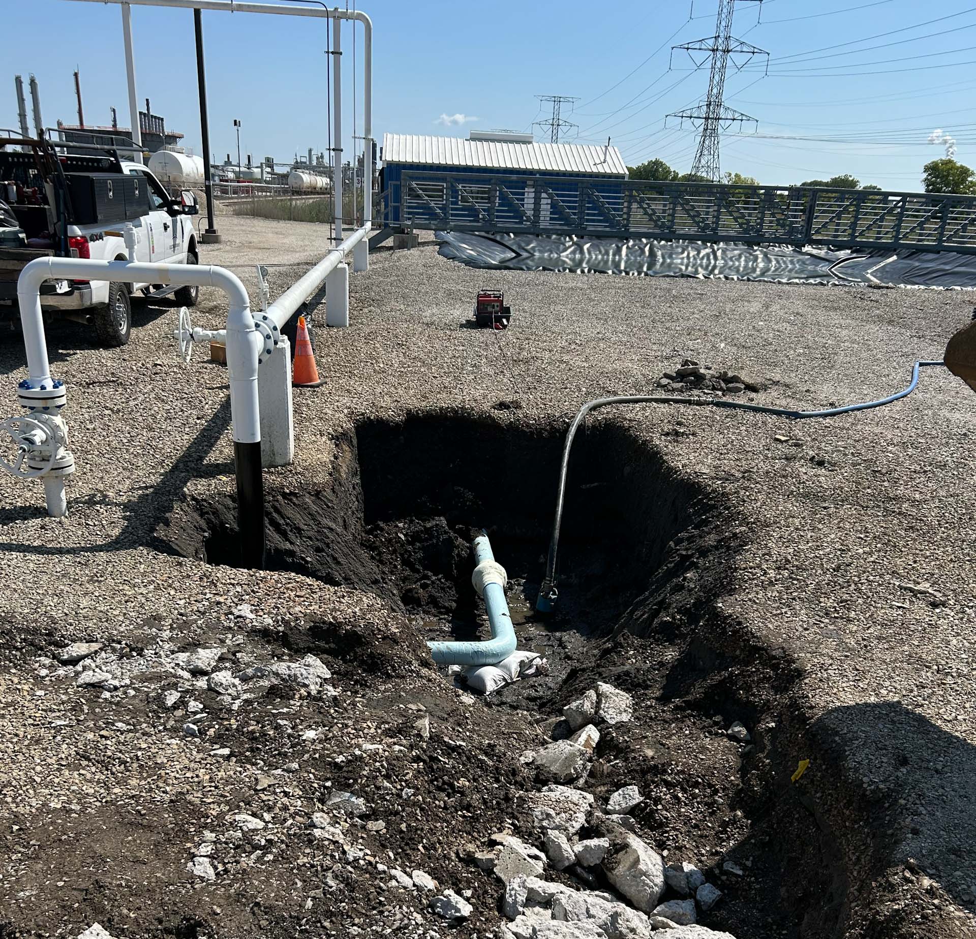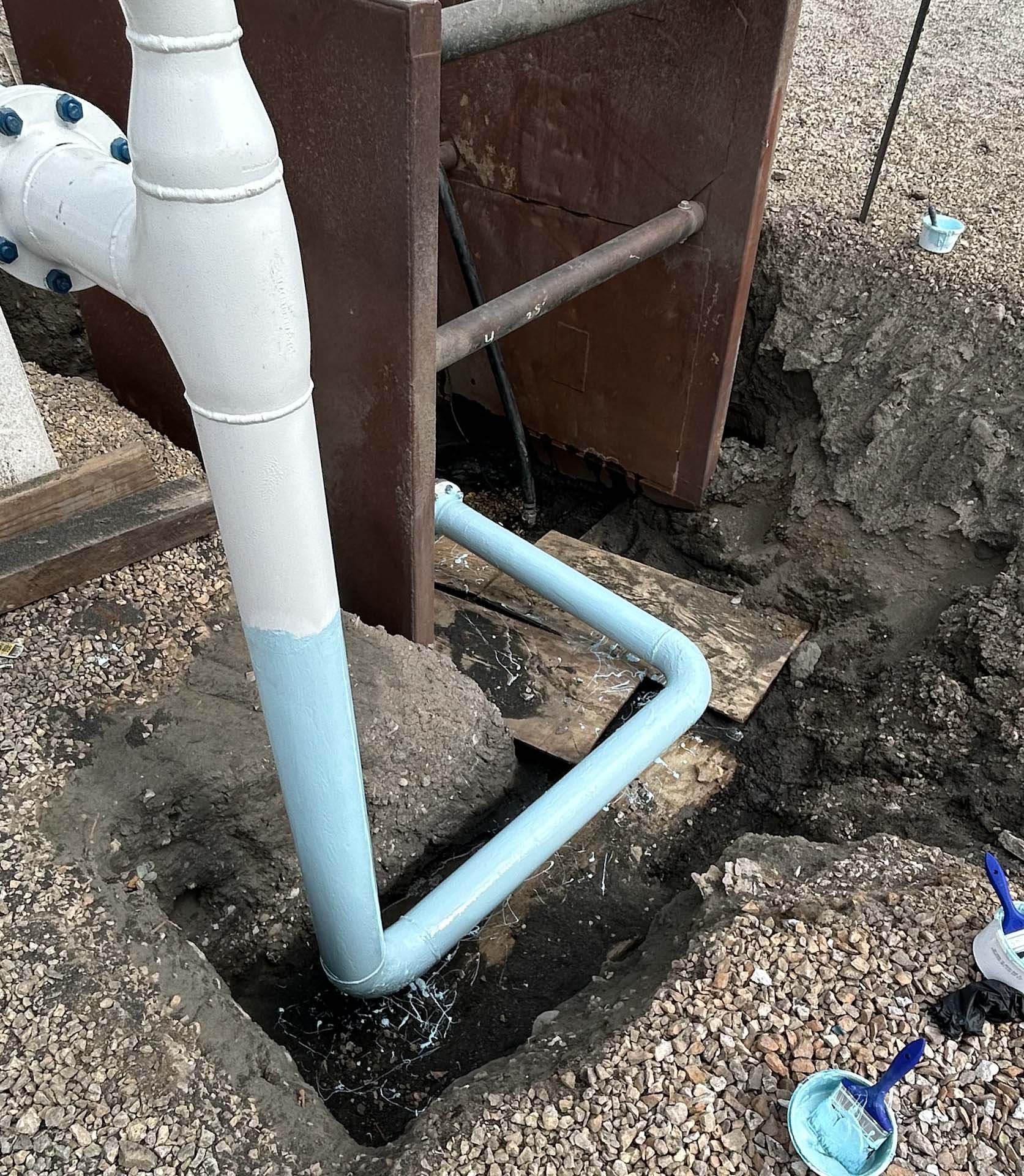 Hydro excavation was used to expose the piping around the existing accumulator tanks. Once exposed measurements were taken and isometric drawings were made. All the fabrication work took place in Midwestern Contractor’s shop in Elburn, IL. All fabricated components were X-rayed and hydrostatically tested.